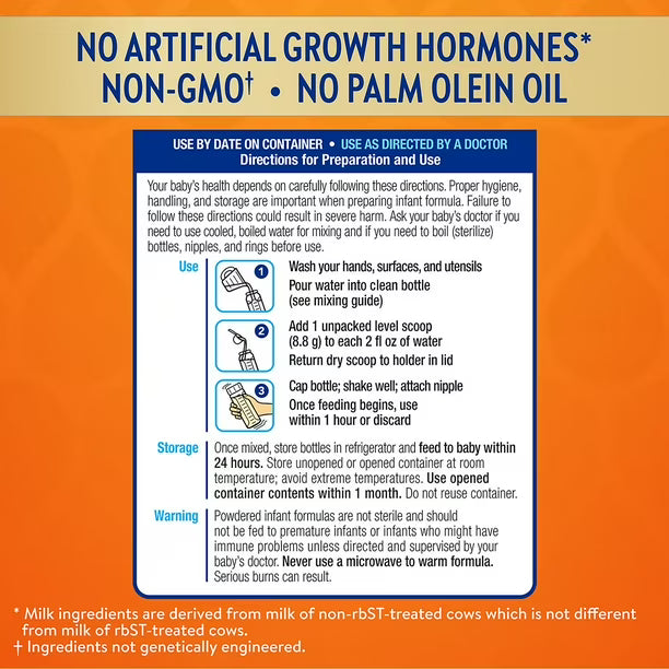 Similac Sensitive Powder (40oz) is a nutritionally complete, milk-based infant formula designed for babies with sensitive tummies and lactose sensitivity. It’s formulated to help ease fussiness, gas, and mild spit-up while providing complete nutrition for growth and development. This formula includes key nutrients like DHA and lutein to support brain and eye development and is made with no palm olein oil to help calcium absorption. It’s also gluten-free, kosher, and halal, with no artificial growth hormones.